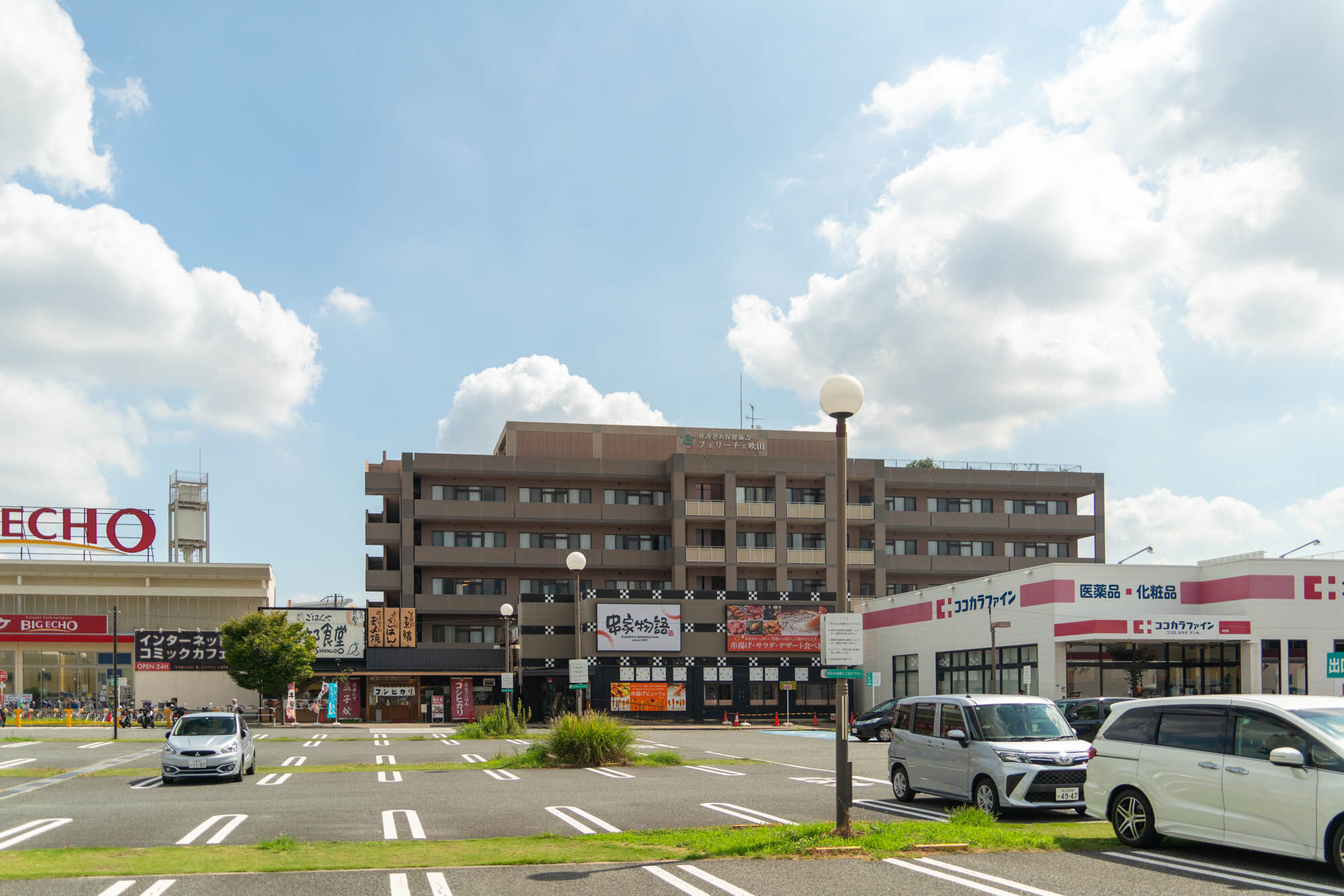 ビッグエコーや食堂、ココカラファインの並びに店舗が。