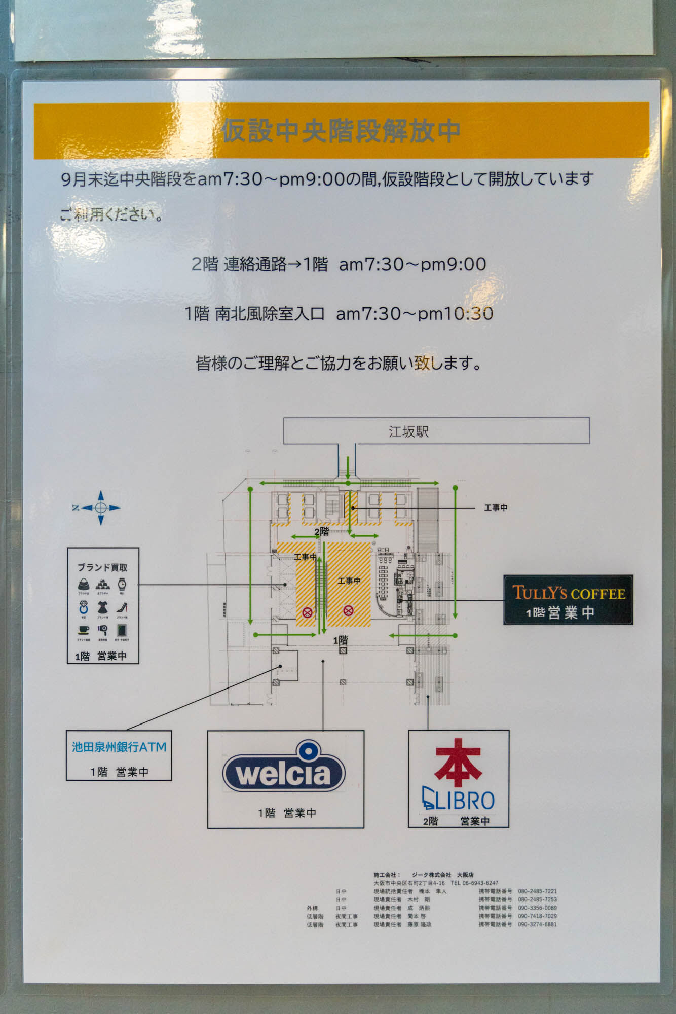 EDGE江坂内では工事が行われていまして、館内地図でいうと下の方ですね。