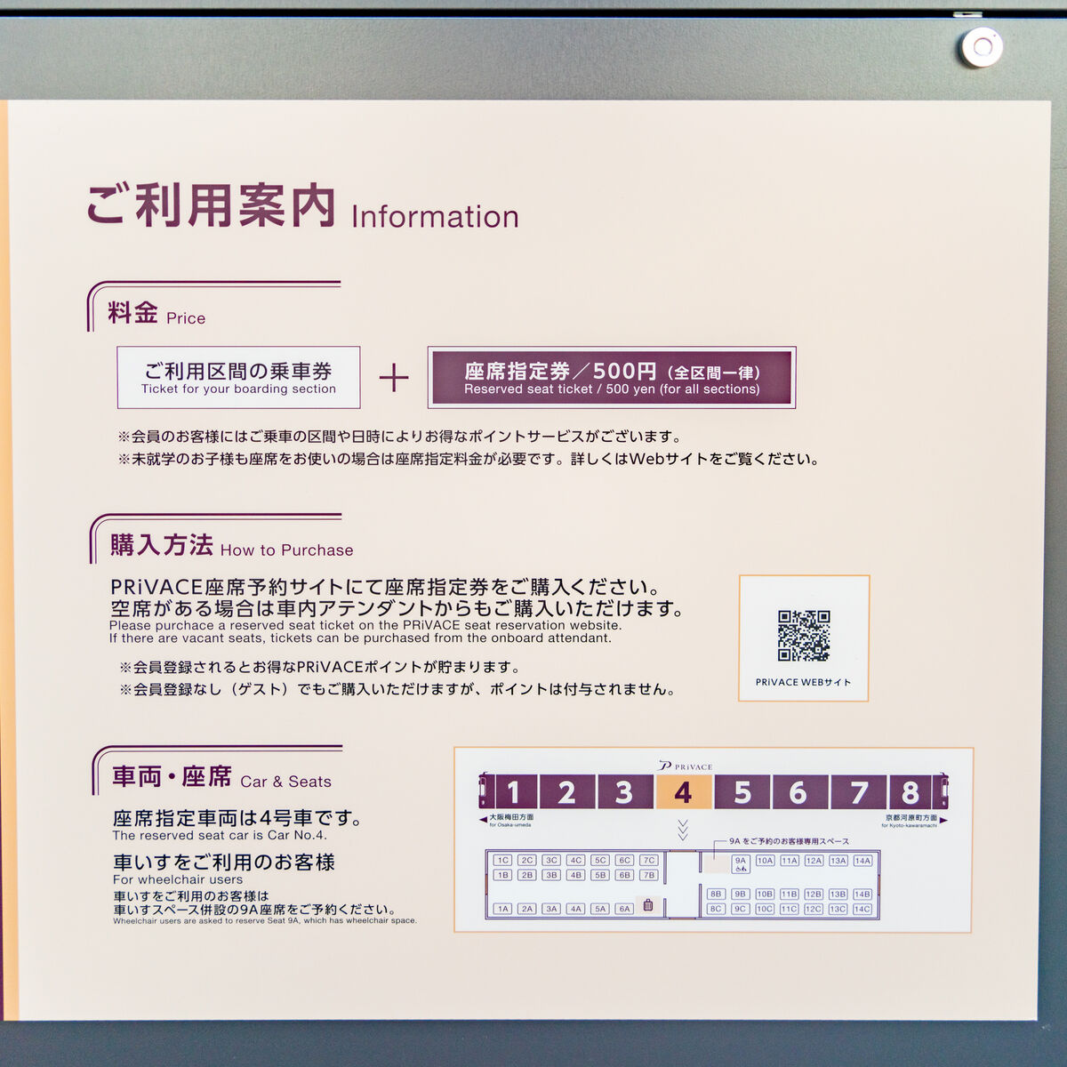 PRiVACE(プライベース)は7月21日から始まった、阪急電車京都線初の座席指定サービス。